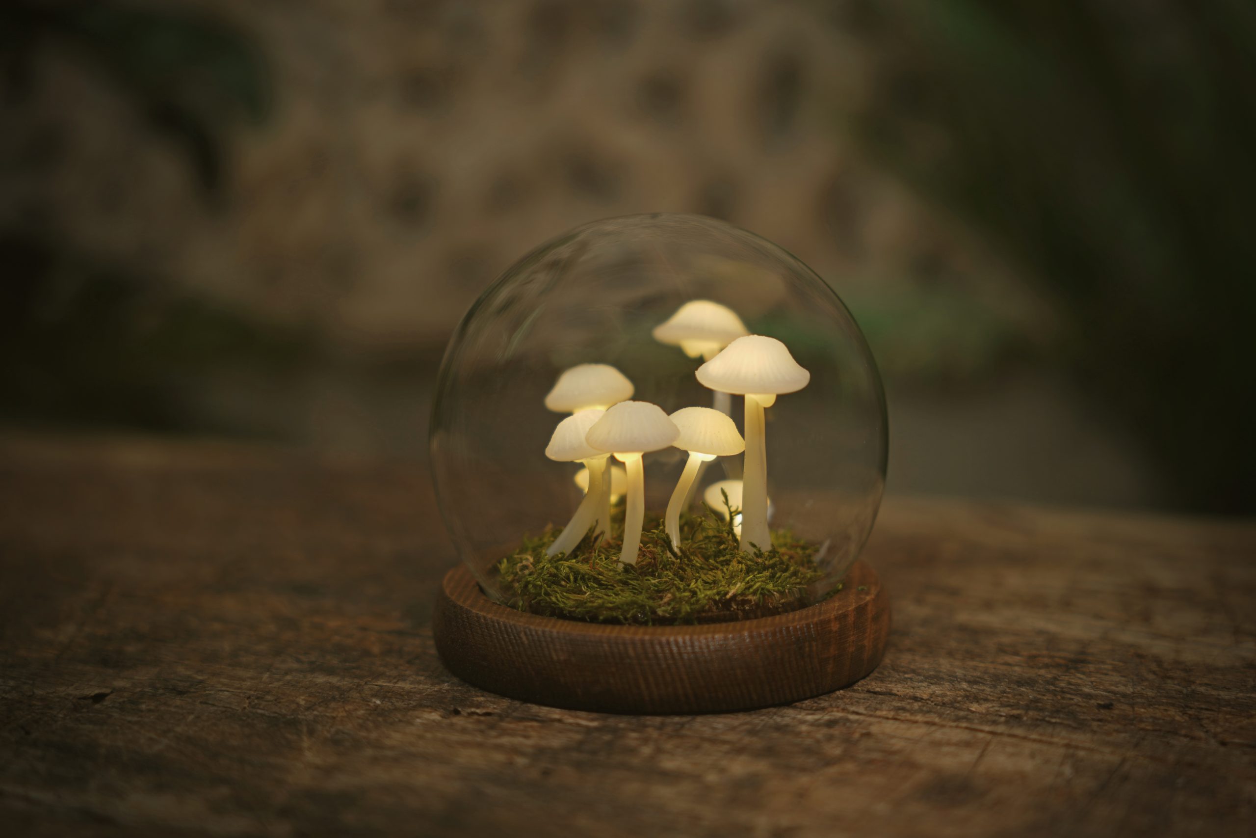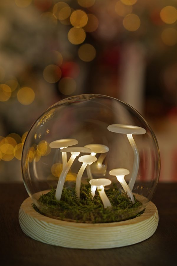 Ez a Gombalámpás 8 darab világító gombával nyújt csodálatos fényt az otthonodban. A kis gombák kézzel, szeretettel készülnek az üveggömbbe, amely 12 cm magas.