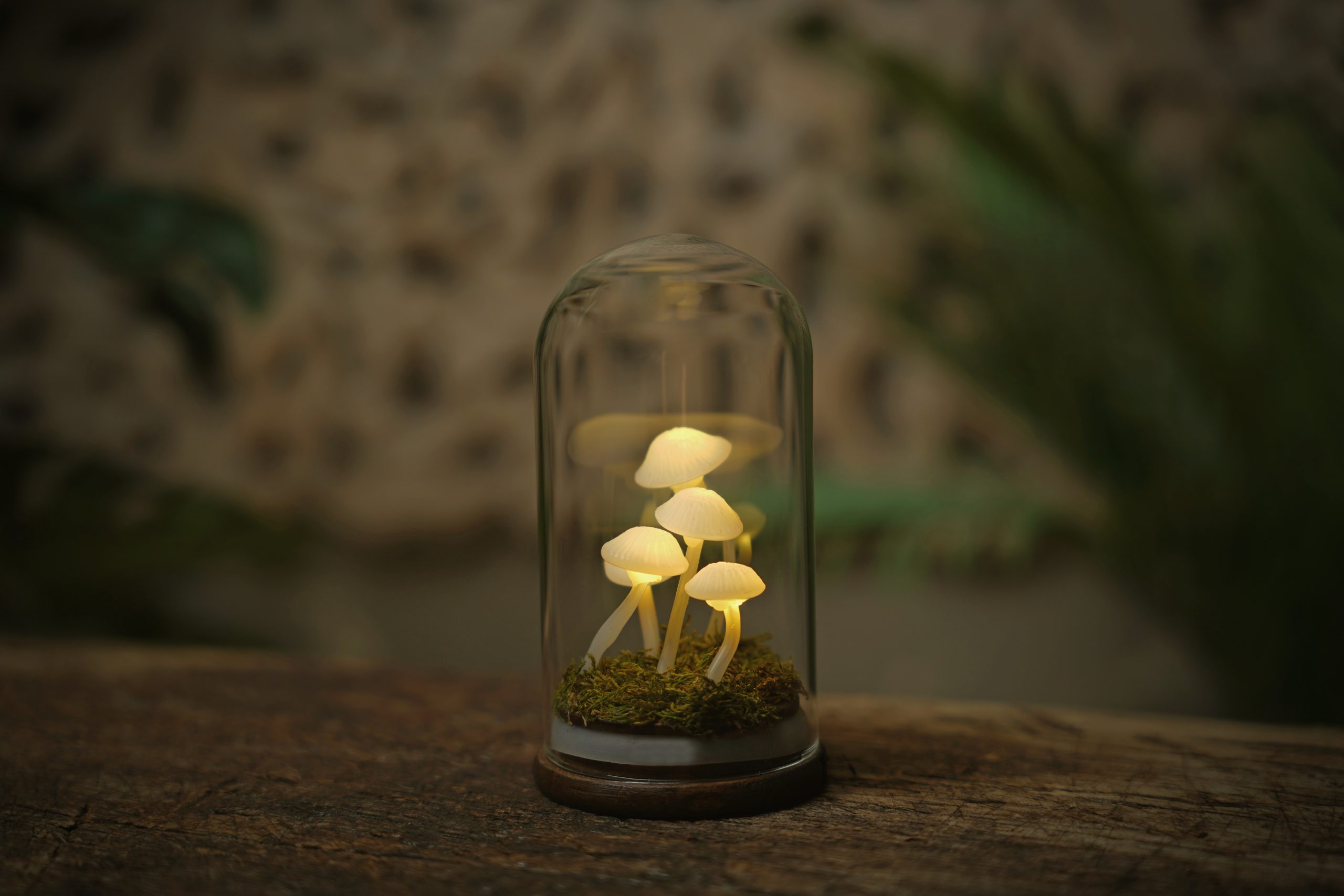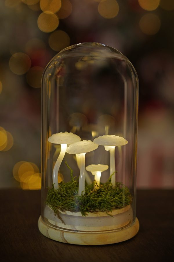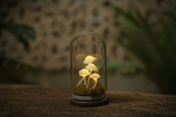 Ez a Gombalámpás 5 darab világító gombával készül, amelyeket élő moha ölel körül.
