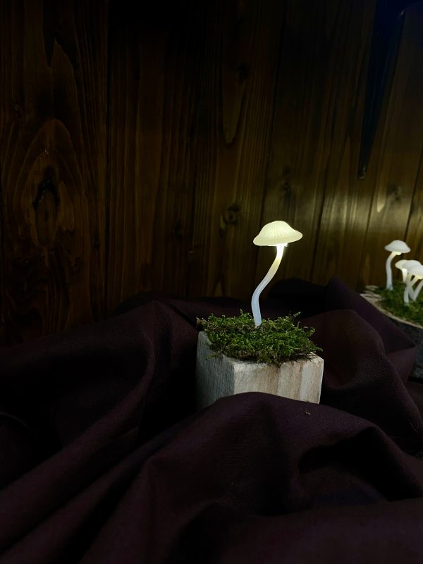 Gondosan, kézzel készítem ennek a kis csodának is minden darabját. Egy 5×5 cm-es, kb. 3 cm magas fakockán helyezkedik el, 1 darab kis világító gomba, amelyet 1 darab CR2032-es elem működtet.