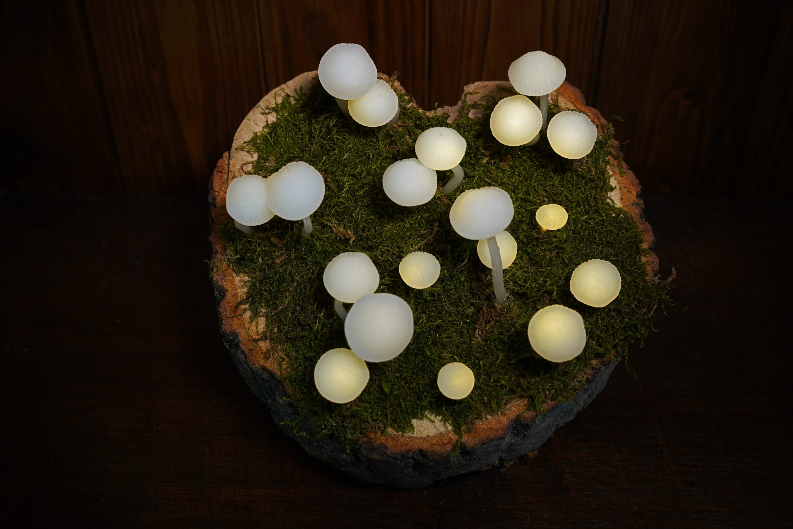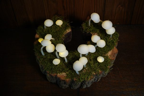 Ez a Gombalámpás 2 féle kivitelben érhető el, a “teli szív” és a “rusztikus szív” formában. A Valentin napi különleges kollekcióban elérhető, limitált számban. 20 darab búbos kalapos gomba ékesíti a szív alakú fa szeletet. 1 darab CR2032-es elemmel működik.