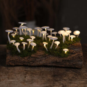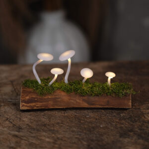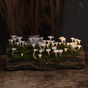 Fél farönkön fekvő, sima kalapos világitó gombák